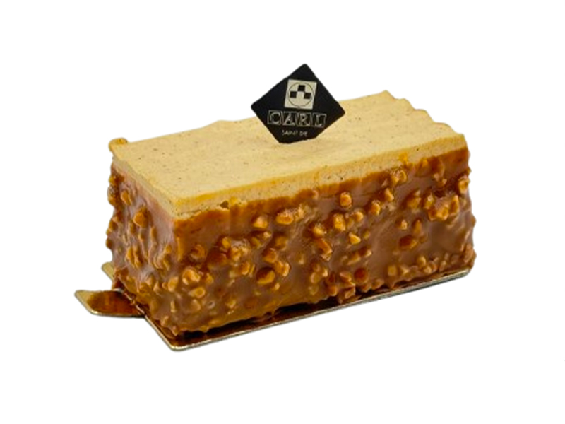 Croustillant praliné, dacquoise noisette, crémeux chocolat et chantilly chocolat lait